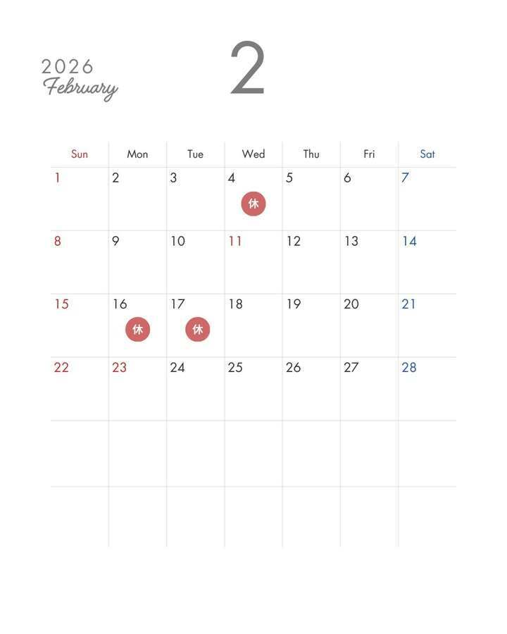 2月の営業スケジュールです!!
